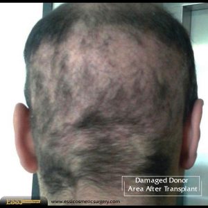 In the hair transplant procedure, we extract your follicles (grafts) from the back of your head (donor area) and transplant them to your bald or recipient area. During this extraction, we have to be very careful on deciding how many grafts we take because if we take to more than the necessary amount of grafts from your donor area, there might be damage on your donor area. You can see how it looks in the photo below.